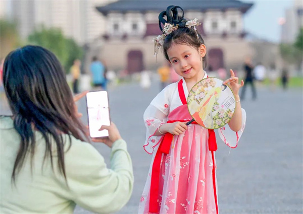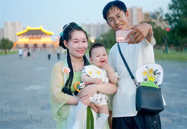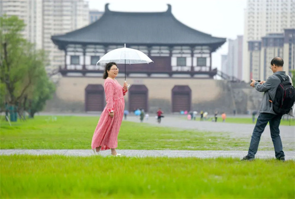在定鼎門城樓上登高北望,天街中軸線恢宏大氣,青蔥綠植點綴其間,隋唐洛陽城的城市軸線格局清晰再現(xiàn)。若你再定睛細(xì)看,還能在斗轉(zhuǎn)星移的氤氳時光中看到些許古人的浪漫。