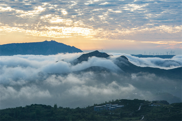 一場夏雨過后,河南省鄭州市登封市出現(xiàn)云海霞光美景。晨曦中,云海縹緲,霞光漫天,美輪美奐,令人陶醉。
