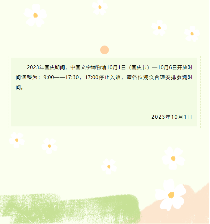 注意┃中國文字博物館國慶期間開放時間調(diào)整!
