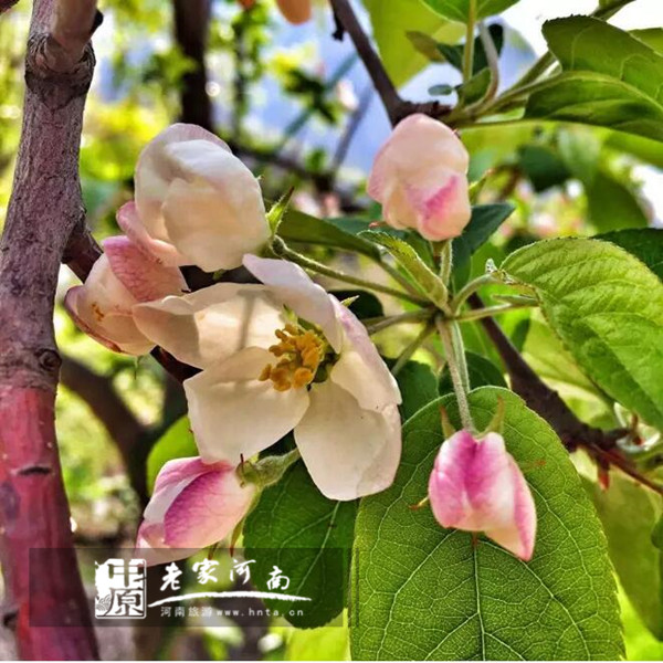 藍(lán)天白云,粉白相見,不是不怒放,只是愛低調(diào)的芬芳。關(guān)山的連翹就是南太行活潑的樣子,秋溝的桃花是南太行浪漫的樣子,那齊王寨的海棠花就是南太行嬌羞的那一面。你瞧,一陣風(fēng),落英漫天,春天,真的還未走遠(yuǎn)。