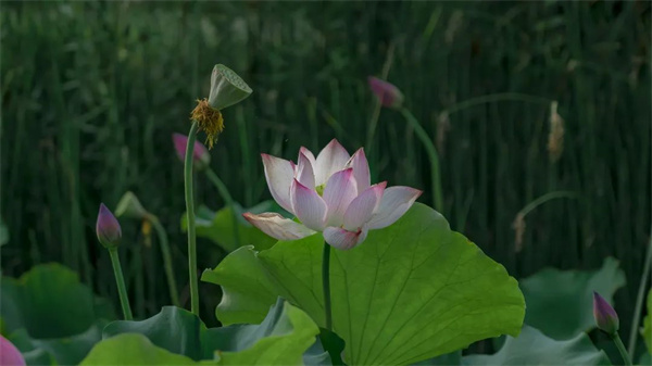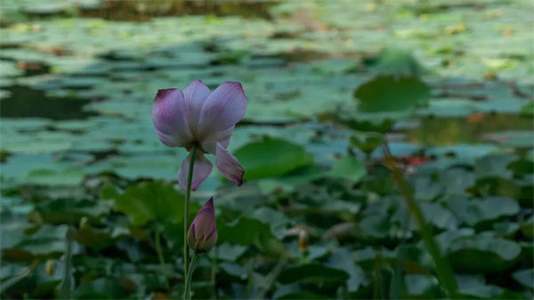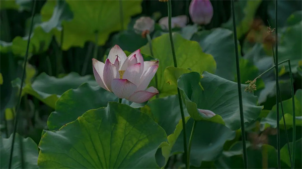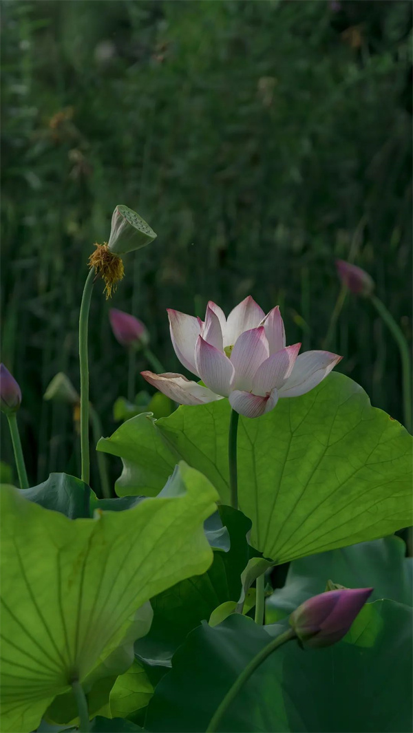 微風(fēng)拂過,一池漣漪帶起芙蓉顫動,淡淡的清香便裊娜而來。將開未開的荷苞,恰似豆蔻梢頭含羞的少女;全開的花盞又如清透出塵的仙子,不染塵埃。