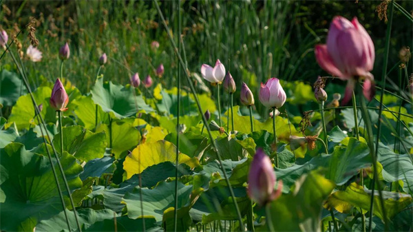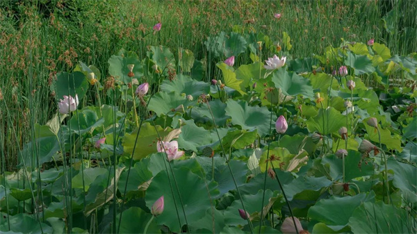夏風(fēng)暖和,吹醒了園博園里的荷塘,競相盛開的荷花,為酷熱的夏天增添了一份爽目的清涼。