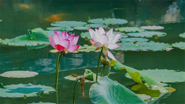 荷塘深處,魚兒嬉戲其間,濺起來的水花落在荷葉上翻滾跳躍,水靈靈的美把人看醉。