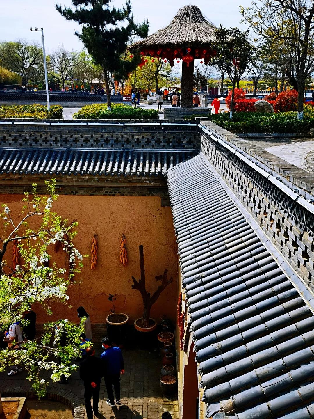天空蔚藍(lán)輕暖,樹(shù)木蔥郁茂盛,花兒爭(zhēng)相驚艷,陜州地坑院里處處充滿著春天的氣息。