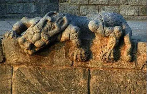 龍子趴蝮,排行老六,又名帆蚣。傳說它的形象似龍非龍,似蝦非蝦,平生最喜歡水,伴水而居。它愛喜波弄水,長年累月在河水中玩耍,擅水性,喜歡吃水妖,據(jù)說是龍王最喜之子。人們慕其水性極好,常雕于橋柱上,希望能懾服江河,免除水患之災。少林寺藏經(jīng)閣前的月臺兩側(cè),都雕刻有趴蝮形象,每逢下雨時,月臺上的積水從趴蝮口中吐出,宛如一道美麗的風景。