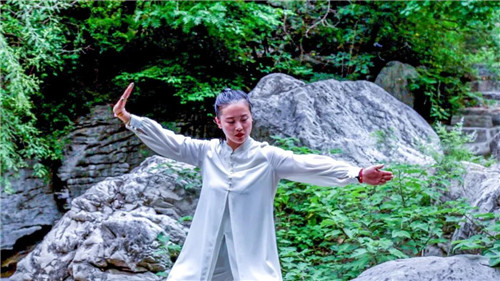 柔美優(yōu)雅的太極拳加上雨中的峽谷風(fēng)光,每一幀畫面都盡顯人與自然的和諧之美。