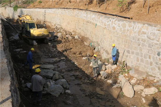 寨溝河道治理施工長度為300米,工程包括河道加寬、堰體增高、污水管網(wǎng)鋪設(shè)、河道周邊增綠等。