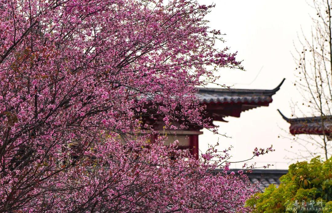鄭州街頭的美人梅、榆葉梅也次第開放,茂密的枝條隨風舒展,濃艷淺淡的繁花緊貼枝條,撩人心弦。