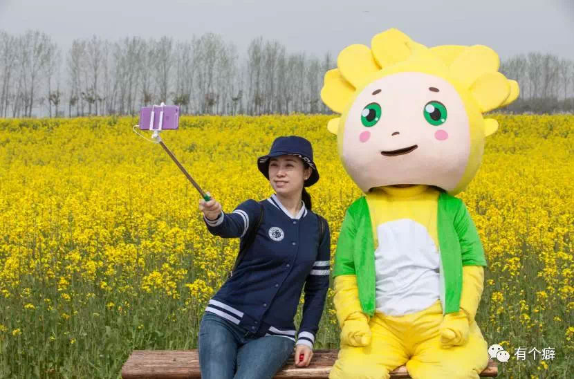 可愛(ài)的油菜花吉祥物寶寶吸引了許多游客合影