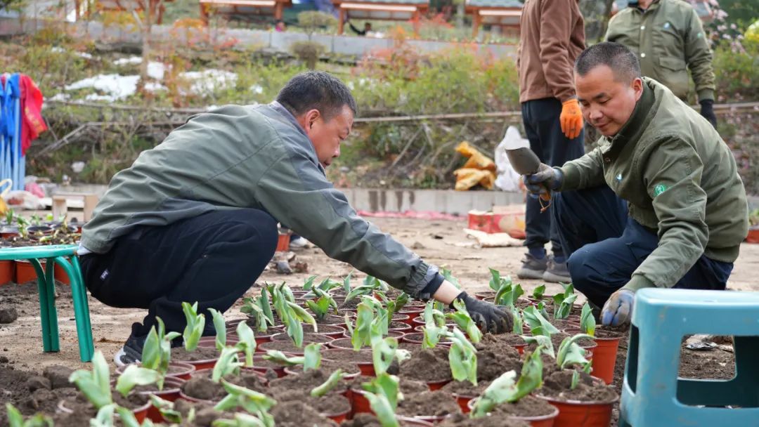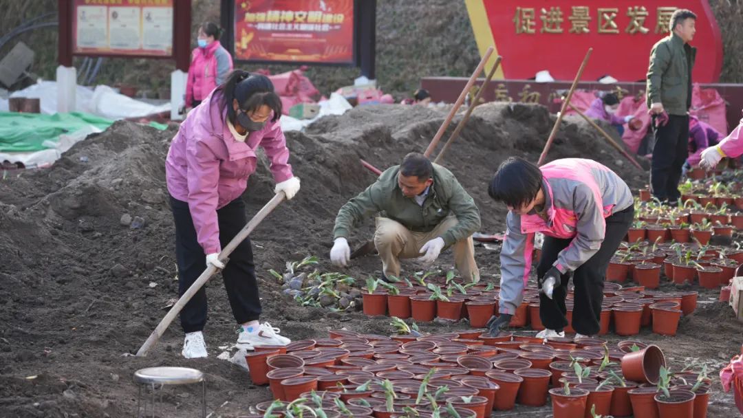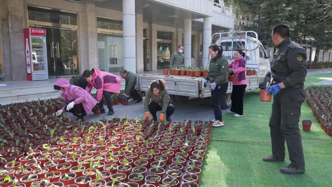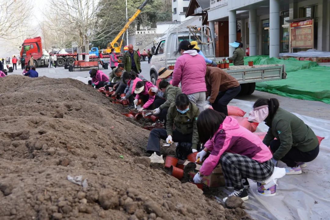 近期,景區(qū)中心廣場上,栽植、搬運(yùn)、擺放、澆水......工作人員分工明確,有條不紊,擼起袖子加油干,整個廣場上呈現(xiàn)一派熱火朝天的勞動景象。