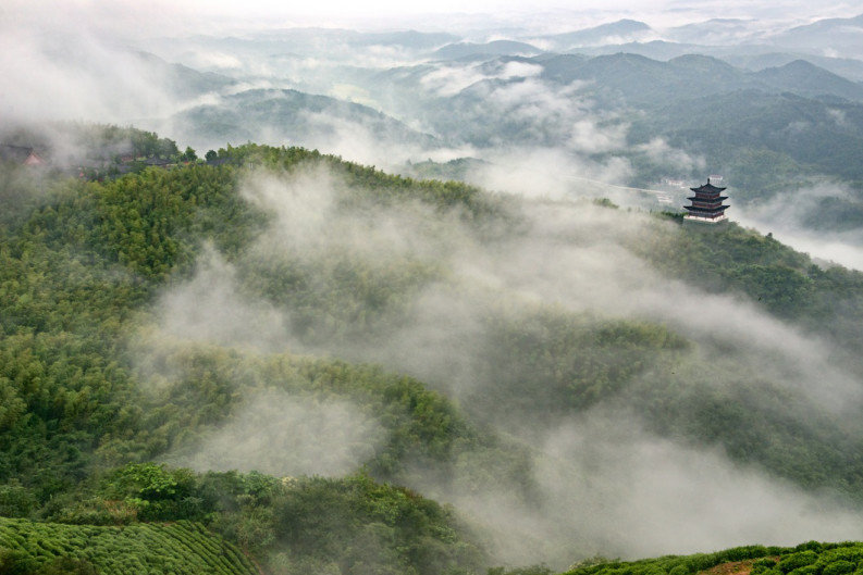 在西九華山連綿起伏的茶海之中,深吸一口自然茶香,感受自然魅力。把自己置身于這片綠色的海洋,早已忘卻了世間種種,那一瞬的空靈,可能是萬畝茶海對(duì)靈魂放逐者的至高洗禮,洗去了今生的塵垢。