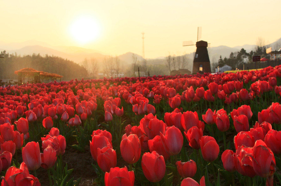 春風(fēng)、春暖、春日、春長(zhǎng),春山蒼蒼,春水漾漾。春蔭萌,春濃濃,滿園郁金香花即將開放。歷時(shí),成片的花海呈波浪狀延伸開來,在花海中遇見最美的春天!