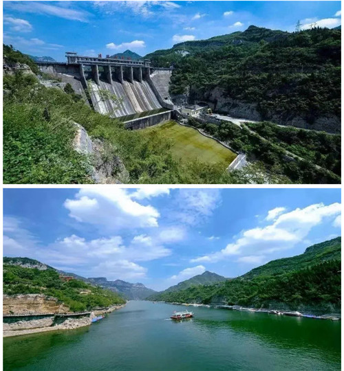 青天河大壩又稱紅旗電站,是博愛縣水利建設史上的一座豐碑。站在大壩上既可以感受當年博愛人民艱苦奮斗、敢叫日月換新顏的震撼氣魄,又可立足壩頂遠眺大泉湖的一川秀水,兩岸青山,豪邁之感油然而生。