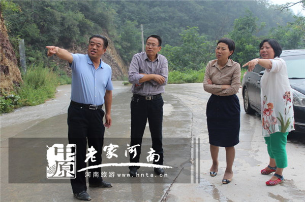 7月21日新鄉(xiāng)市旅游局局長崔紅、副局長冀國強等一行四人來到轎頂山景區(qū)組織指導災后重建工作,并為參與重建工作的員工們帶了礦泉水、方便面等慰問物品。
