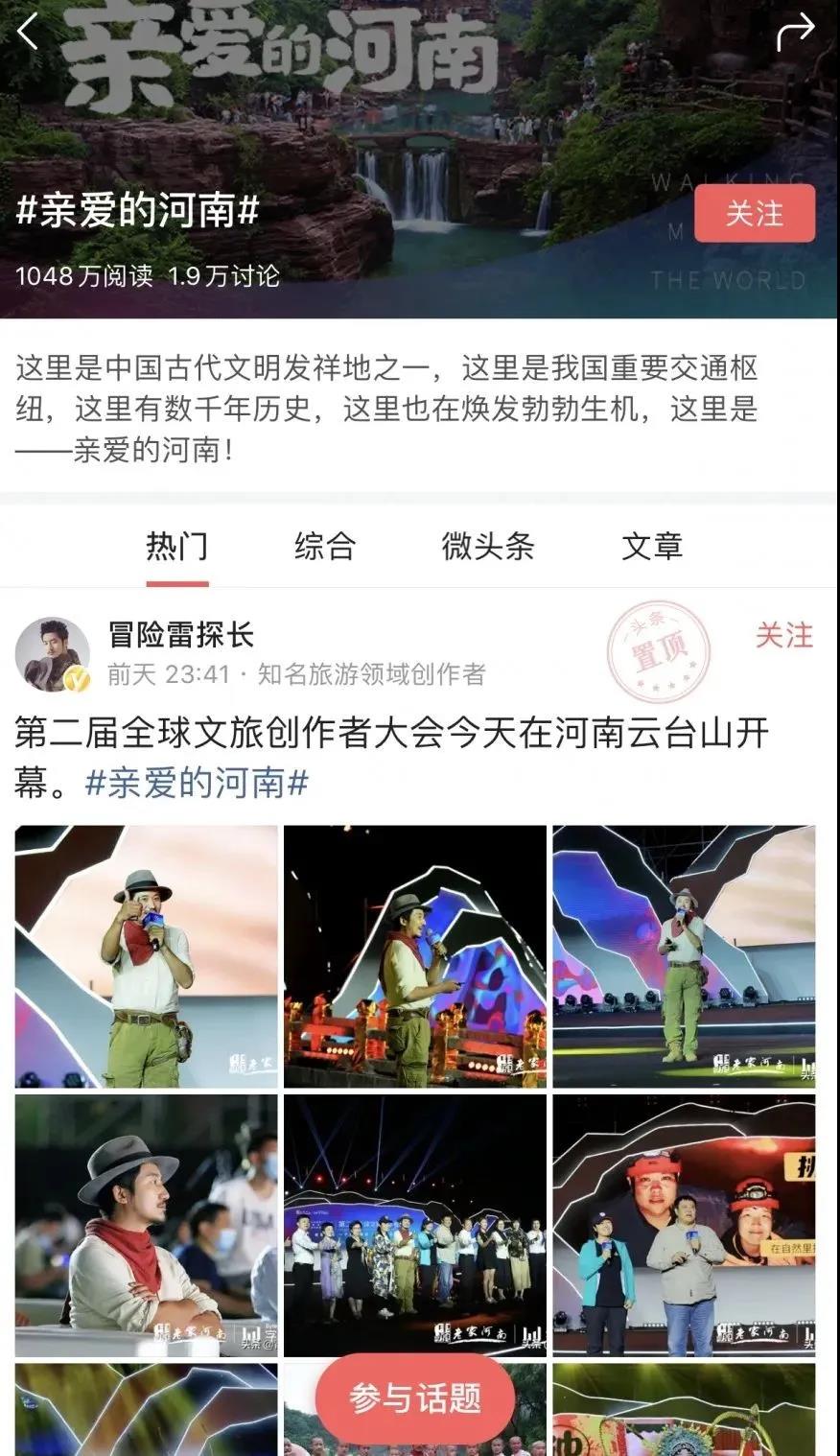 頭條話題#親愛的河南#瀏覽量達(dá)1000多萬