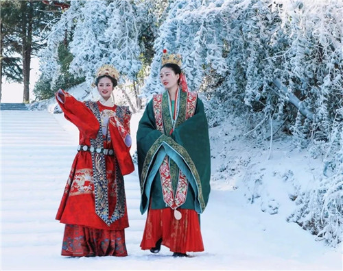 青絲蘸白雪,嬌容絕紅塵。冬日的芒碭山冰雪耀眼,一片白雪皚皚,邂逅霓裳漢服,悄然走進(jìn)畫(huà)中,感受時(shí)間與空間的對(duì)峙,讓艷麗的色彩在雪地里聚焦,讓雪地的浪漫不再單調(diào)。相攜同袍好友,來(lái)奔赴一場(chǎng)漢服與雪的浪漫之約,讓這個(gè)冬天不留遺憾!