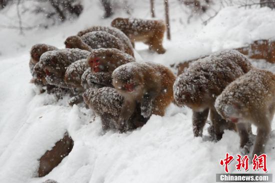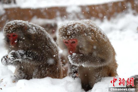 1月6日,中國(guó)猴山河南濟(jì)源五龍口,太行山國(guó)家獼猴自然保護(hù)區(qū)下起了鵝毛大雪,給生活在這里的太行獼猴帶來(lái)了無(wú)窮歡樂(lè),獼猴披雪瞬間變“雪猴”。