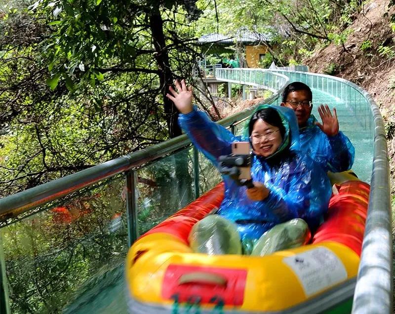此外,來這里不僅可以體驗漂流的清涼,欣賞原生態(tài)的自然風光,還有步步驚心橋、滑道、魔毯等特色項目。