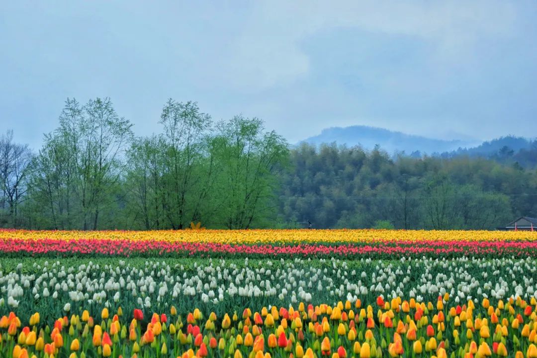 西九華山百萬株大地郁金香同時(shí)綻放在春的懷抱里!