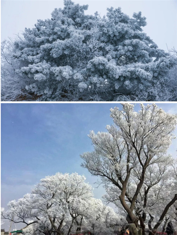 萬畝森林雪樹銀花,千姿百態(tài)猶如仙境,被霧凇包裹的草木,就像無數(shù)潔白的花朵開在山間。