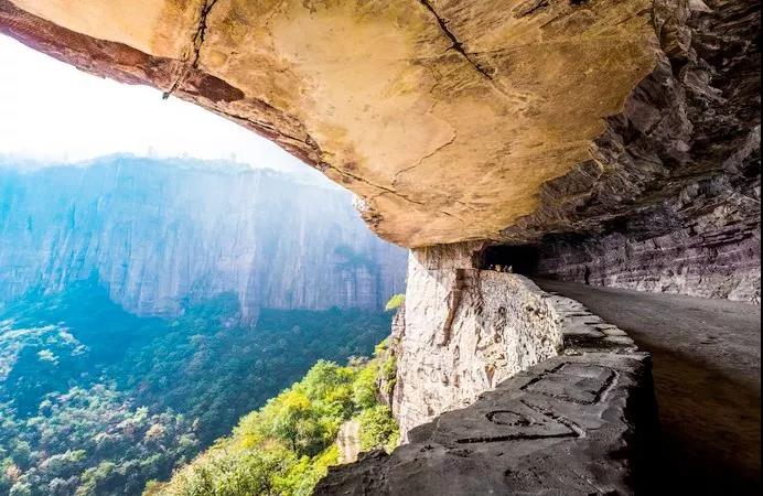 這是一條由郭亮村村民手工歷時五年完成,全長1250米,這里沿途有無數(shù)個峭壁觀景臺,你大可以在這里俯瞰兩百多米高的絕壁,欣賞對面絕壁上的掛壁公路。