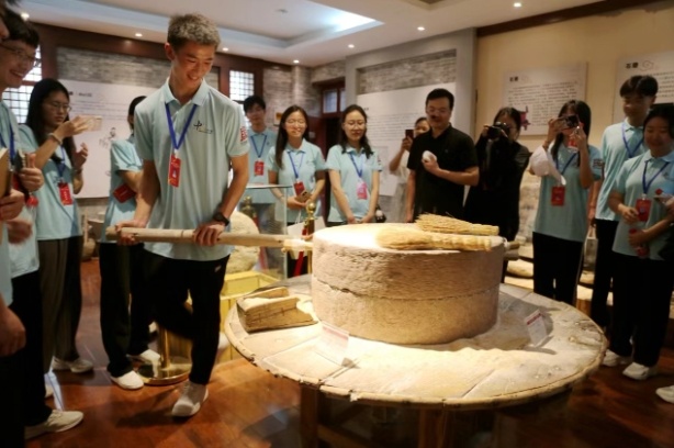 體驗石磨 (資料圖片)許昌學院供圖