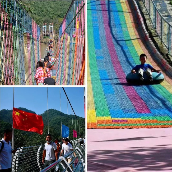 七彩滑道、高空玻璃橋、游船、喊泉、水滑、