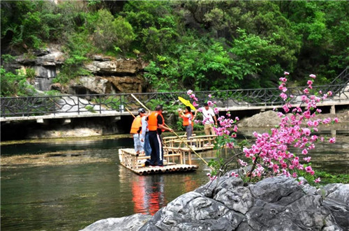 竹筏嬉戲、蕩舟戲水,峽谷中的陣陣清涼,讓人忘卻城市的酷暑,在清澈悠緩的溪水中和清涼來個(gè)親密的“擁抱”,愜意無限。