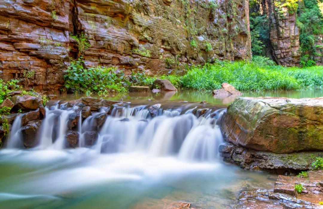 從石龕景點溯源而上,峽谷漸寬,水流速度變慢,泥砂可在谷底沉積,水生植物隨之生長。這里的的水潭較淺,蘆葦植物占優(yōu)勢,因此稱蘆葦灘。蘆葦也稱蒹葭,“蒹葭蒼蒼,白露為霜。所謂伊人,在水一方”說的就是蘆葦。蘆葦可以起到水的凈化作用,經(jīng)過蘆葦過濾后下游的水質(zhì)可變得清澈;一般見到的蘆葦都是在河灘之上見到,但在峽谷中蘆葦并不多見。
