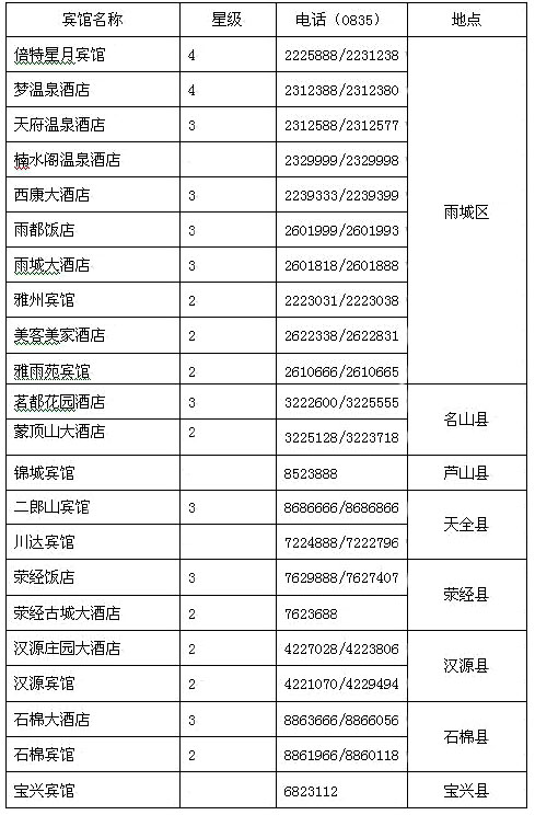 雨城區(qū)旅游局:2822506 碧峰峽AAAA級(jí)旅游景區(qū):2318020