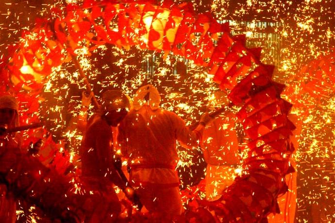 不管這傳說有多少迷信成份,但中國是龍的故土,在香港大坑中秋節(jié)舞火龍已有一百多年的歷史,這是值得珍視的。如今大坑區(qū)的舞火龍活動(dòng)規(guī)模頗大,除總教練、教練、總指揮及指揮外,安全組等等。輪番舞龍者達(dá)三萬多人。