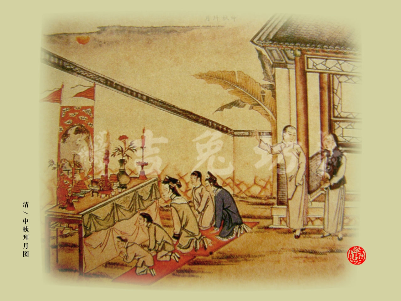 明清之后,因時(shí)代的關(guān)系,社會(huì)生活中的現(xiàn)實(shí)功利因素突出,歲時(shí)節(jié)日中世俗的情趣俞益濃厚,以“賞月”為中心的抒情性與神話性的文人傳統(tǒng)減弱,功利性的祭拜、祈求與世俗的情感、愿望構(gòu)成普通民眾中秋節(jié)俗的主要形態(tài)。因此,“民間拜月”成為人們渴望團(tuán)聚、康樂和幸福;以月寄情。