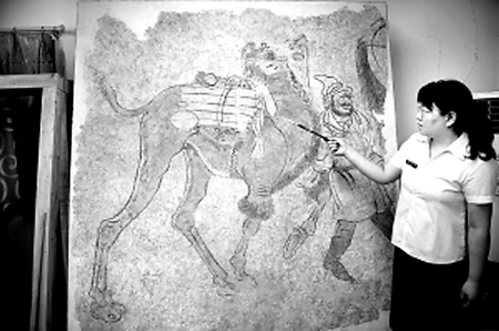 7月13日,洛陽古代藝術(shù)博物館館長王愛文告訴記者,該館工作人員近日在清理和保護(hù)洛陽唐代安國相王李旦孺人唐氏壁畫墓時,發(fā)現(xiàn)了兩幅駱駝馱絲綢壁畫。這一重大發(fā)現(xiàn)為洛陽是絲綢之路起點的說法再添力證。