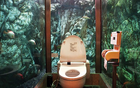 日本:一家名叫“Mumin Papa”的咖啡廳在水族館內(nèi)做了一個水族廁所,如廁時周圍都是游來游去有海底生物。