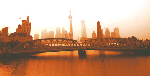 “黃浦的夕潮不知怎的已經(jīng)漲上了,現(xiàn)在沿這蘇州河兩岸的各色船只都浮得高高的,艙面比碼頭還高了約莫半尺。風(fēng)吹來(lái)外灘公園的音樂(lè),卻只有那炒豆子似的銅鼓聲最分明,也最叫人興奮。暮靄挾著薄霧籠罩了外白渡橋的高聳的鋼架,電車(chē)駛過(guò)時(shí),這鋼架下橫空架掛的電車(chē)線時(shí)時(shí)爆發(fā)出幾朵碧綠的火花……”這是茅盾先生《子夜》中記錄的二三十年代的光景。