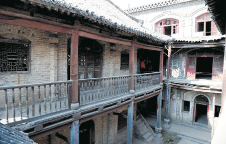 柏茂園是清朝舉人張佑的府第,張佑府第體現(xiàn)了典型的中原西部民居的特色:靠山挖窯洞,臨街建樓房;中間建有四合庭院。張佑的柏茂園更是把這種建筑格局進(jìn)行了充分的發(fā)展和細(xì)化:府第坐西向東,前建臨街樓房和大門,中部從南往北依次建有4棟廡殿頂式樓房,歇山抹角磚木結(jié)構(gòu),四坡七脊筒瓦蓋頂,形成兩個(gè)兩進(jìn)四合院。