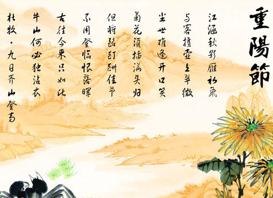 農(nóng)歷九月九日,為傳統(tǒng)的重陽節(jié)。重陽節(jié)又稱為“雙九節(jié)”、“老人節(jié)”,因為古老的《易經(jīng)》中把“六”定為陰數(shù),把“九”定為陽數(shù),九月九日,日月并陽,兩九相重,故而叫重陽,也叫重九。古人認為是個值得慶賀的吉利日子,并且從很早就開始過此節(jié)日。慶祝重陽節(jié)的活動豐富,情趣盎然,有登高、賞菊、喝菊花酒、吃重陽糕、插茱萸等等。