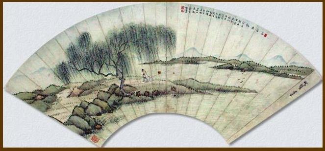 明永樂帝開始主導(dǎo)折扇潮流,他命令內(nèi)務(wù)府大量制作,并在扇面上題詩賦詞,分贈于大臣。一時折扇大貴,成為一種時尚。文人雅士學(xué)著互贈題詩詞字折扇,表喻友情別意。手持折扇,成為當(dāng)時生活中高雅的象征。折扇一旦流行,久盛不衰。在清代,折扇之隨處可見,簡直登峰造極到有泛濫的嫌疑。明清時,在折扇生產(chǎn)地--江南一帶,出了很多名士,他們的風(fēng)流才情,與折扇有著絲絲縷縷的關(guān)系。他們所營造出的江南如水的文化氛圍,表現(xiàn)出柔情氳氤的詩畫美境;通過以折扇為媒介,流傳于皇宮、府第、閨室、民間、海外。而折扇也因了這些美畫佳句身價百倍。