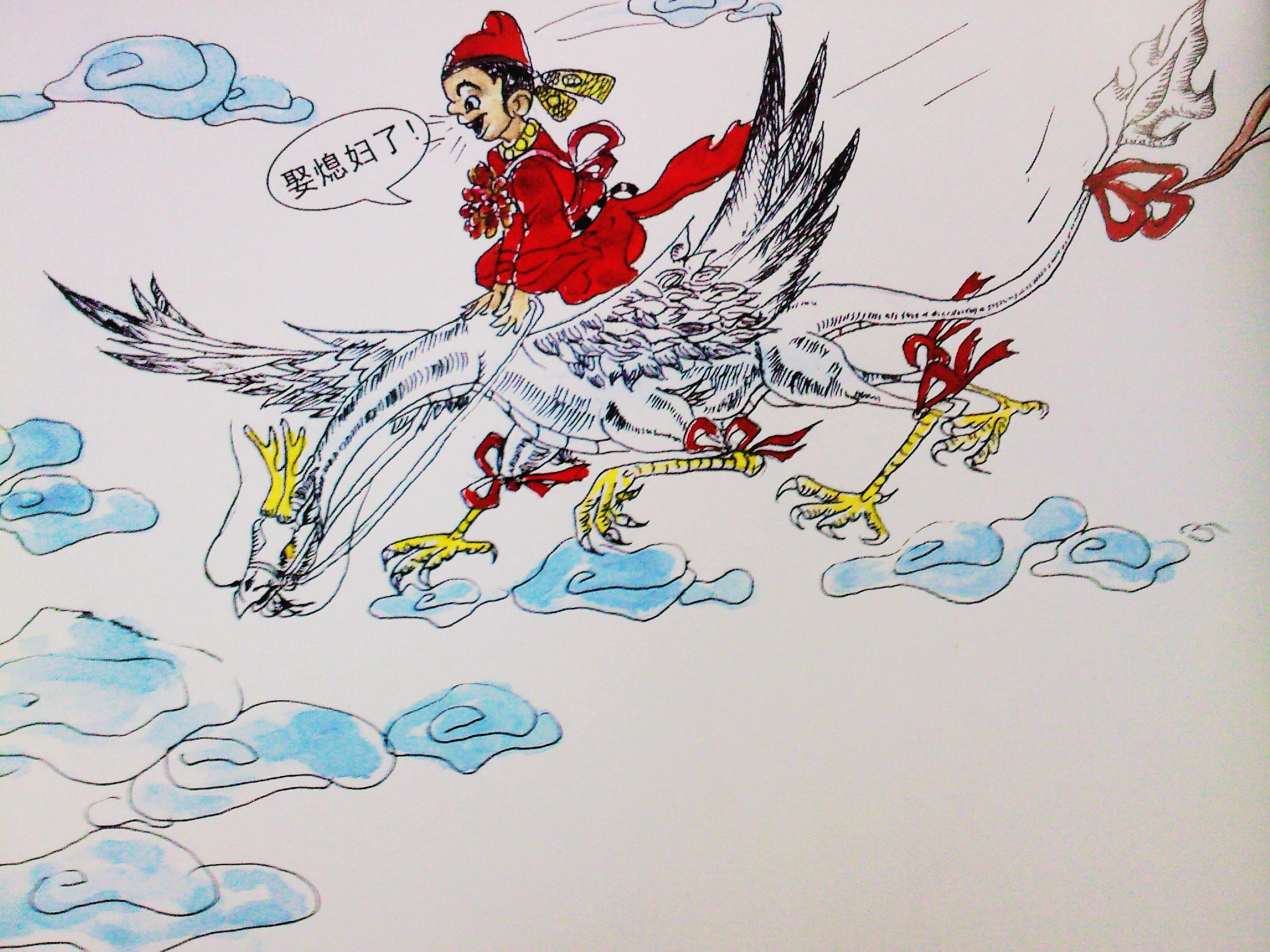 大禹為了治理洪水,整日騎著蒼龍巡回各地,三十多歲了還未結(jié)婚。有一次,他治水來到了涂山,將附近的洪水成功導(dǎo)入淮河后,有一只白色的九尾狐貍走到大禹面前,對(duì)著涂山氏人說:“乘龍快婿到了,大家快來歡迎。”傳說九尾狐貍是種吉祥的動(dòng)物,非常有靈性,它的出現(xiàn)會(huì)給人們帶來好運(yùn)。這時(shí),大禹又聽到一群涂山人在對(duì)唱,這邊唱到:“美麗光潔的白色狐貍,九條尾巴摔摔打打。九尾白狐來做客,我的家庭有吉祥好兆。有了妻室而成立家庭,我將達(dá)到昌盛的彼岸。天人之際事情微妙莫測(cè)應(yīng)該抓住時(shí)機(jī)趕快進(jìn)行。”那邊唱道:“白色的狐貍啊多么安閑,九條尾巴蓬松好看,我的家因你治水美好而平安,你這個(gè)未來的王子啊,和你結(jié)成婚姻將非常美滿,你我的造化啊昌盛的明天,自然的法則啊人間的姻緣,不要遲疑啊就在眼前。”大禹聽了這歌,明白了天意,就說:“我要依著天意行事。”然后就和漂亮大方、美麗可愛的姑娘涂山嬌結(jié)成了美滿的夫妻。后來人們就用“乘龍快婿”指才貌雙全的女婿,后也用作譽(yù)稱別人的女婿。