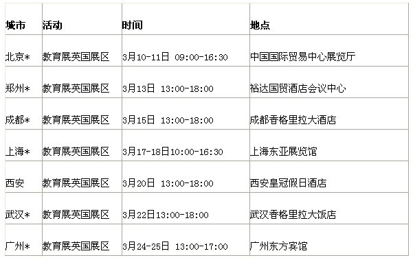 2012春季中國(guó)國(guó)際教育巡回展城市及時(shí)間表