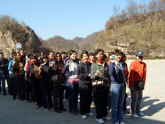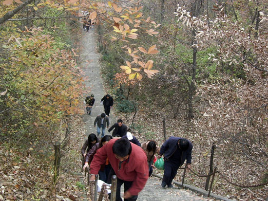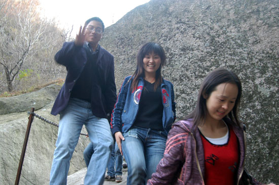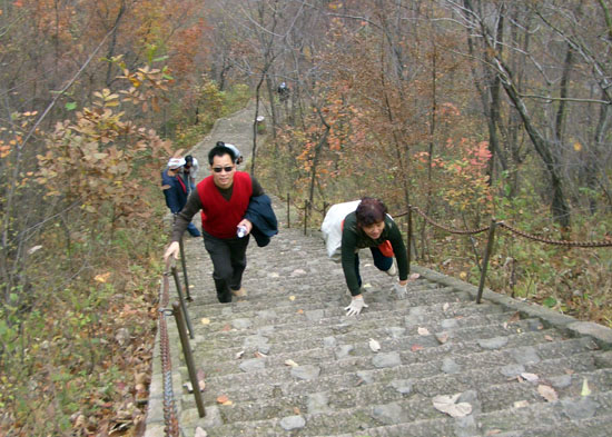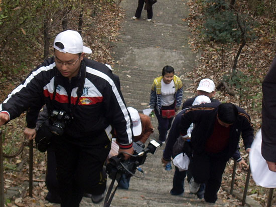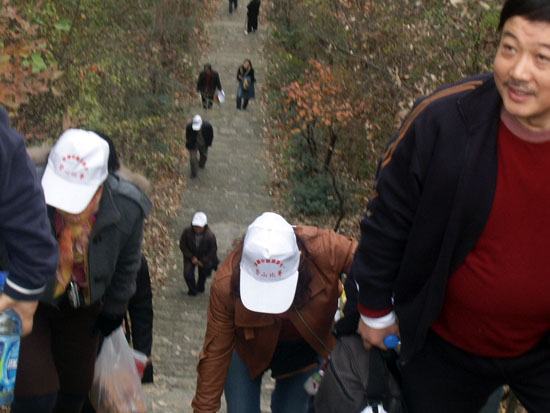 導游說早飯后有登山比賽,有愿意參加的可到連里門領一頂?shù)巧矫,?0名有獎。很多年輕人都開始興奮不已,早早就跑到連里門集合,今天登的是炎黃峰,大家你追我趕,手腳并用,不為名次,只為體驗拼搏、挑戰(zhàn)自我、追求健康。一路上在即興奮又輕松的氣氛中登頂,群峰盡覽,唯我獨尊的感覺,尤然而生!
