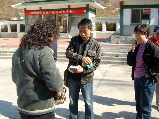 車行至景區(qū),在群山環(huán)抱的山門上,一條整齊條幅映入眼簾“熱烈歡迎金穗中原旅游卡持卡人”,心里暖暖的,頓時有一種貴賓的感覺。說實話,在路上心里還直犯嘀咕,86塊錢兩日游,這么低的價錢還真擔心便宜沒好貨呢,現(xiàn)在全放松了,看來今天是來著啦!