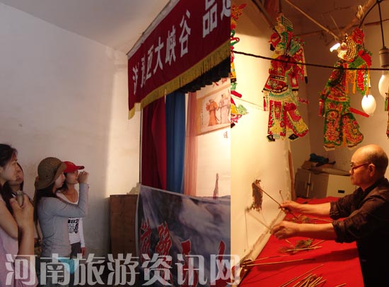 在仿建的豫西獨有的天井窯院內(nèi),進谷前的開場好戲上演了。地道的豫西道情皮影戲,著實吸引了會員們的眼球。