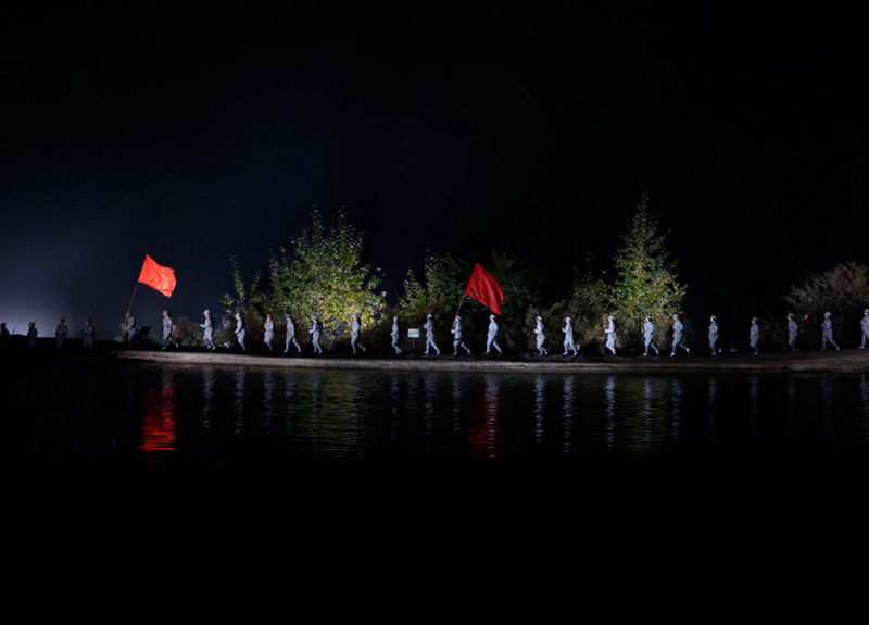 去年9月,武鄉(xiāng)縣斥巨資打造大型實(shí)景演出《太行山》首演,演出地選在龍湖的千畝水面與八角山的山水之中。在縱深3.5公里、橫向6公里的大型實(shí)景劇場上,600多名老區(qū)農(nóng)民再現(xiàn)了當(dāng)年日軍炮火下的戰(zhàn)爭場面和武鄉(xiāng)的民俗風(fēng)情。圖為《太行山》實(shí)景演出現(xiàn)場。