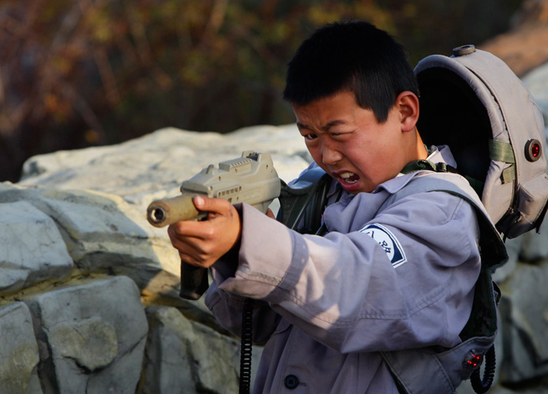 圖為一名“八路軍士兵”參加戰(zhàn)斗。