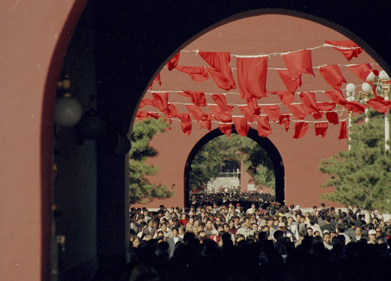 1999年,中國國務院公布了新的《全國年節(jié)及紀念日放假辦法》,決定將春節(jié)、“五一"、“十一”的休息時間與前后的雙休日拼接,從而形成7天的長假,即"黃金周"。第一個“黃金周”為1999年國慶節(jié)假期,期間全國出游人數(shù)達2800萬人次。圖為1999年10月1日,北京故宮外的游客。