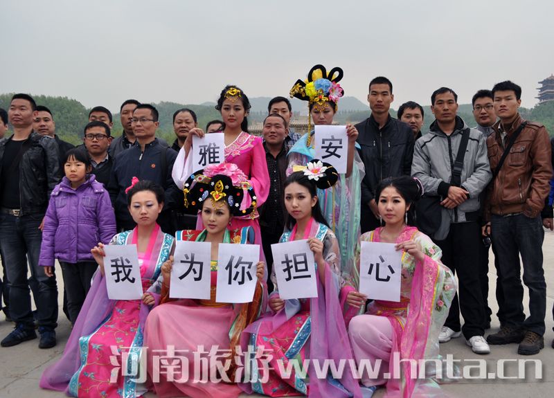 杜鵑仙子、媒體人、游客及中原大佛景區(qū)工作人員為雅安祈福