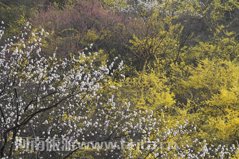 春日的關(guān)山,萬物復(fù)蘇,黃金連翹、粉紅桃花、雪白杏花……,國家地質(zhì)公園裝扮成一幅五彩的立體畫卷。