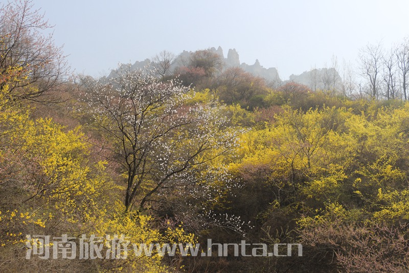 春日的關(guān)山,萬物復(fù)蘇,黃金連翹、粉紅桃花、雪白杏花……,國家地質(zhì)公園裝扮成一幅五彩的立體畫卷。