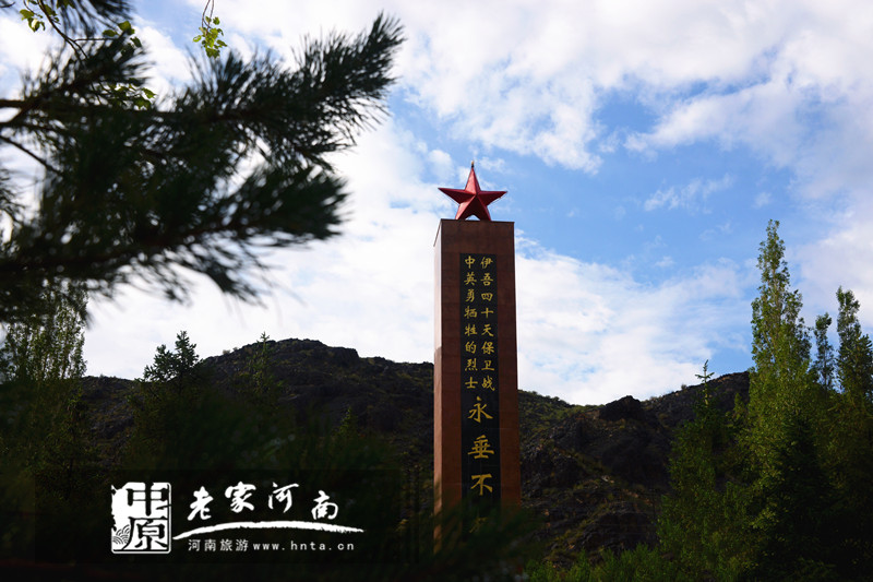 紀念碑分碑基和主體,磚混結(jié)構(gòu)。碑基用粉紅、草綠水刷石裝飾,高4米,分四層。每層各高1米,主體高10米,寬2米,斷面成正方形,白色水刷石裝飾。碑頂上鑲飾鐵質(zhì)紅五星,直徑2米,碑體空心。